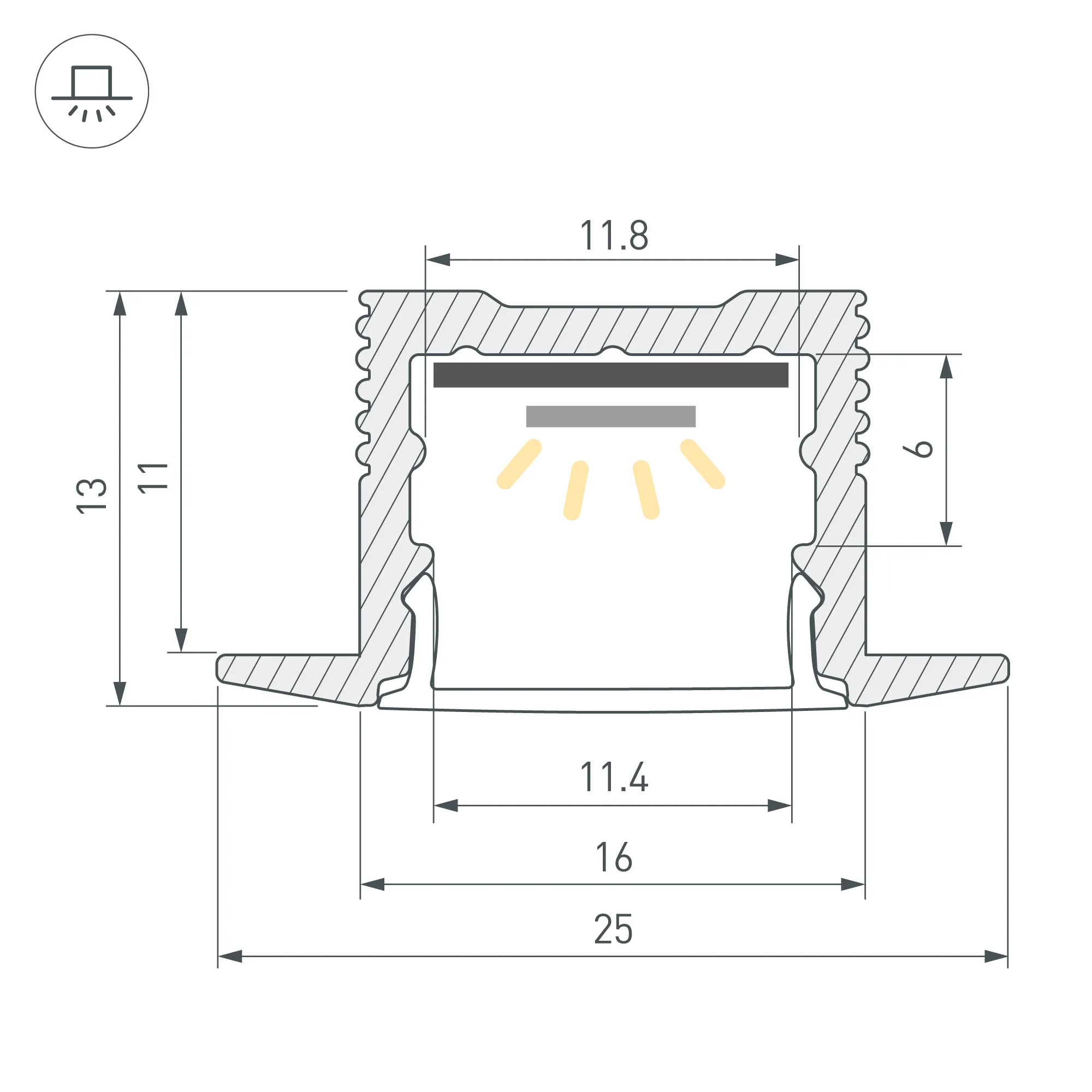Алюминиевый анодированный профиль для светодиодных лент и линеек. Габаритные размеры (L×W×H): 2000x25x13 мм, паз для установки 16 мм. Ширина площадки для ленты 12 мм. Экраны, заглушки и другие аксессуары приобретаются отдельно. Цена за 1 метр.