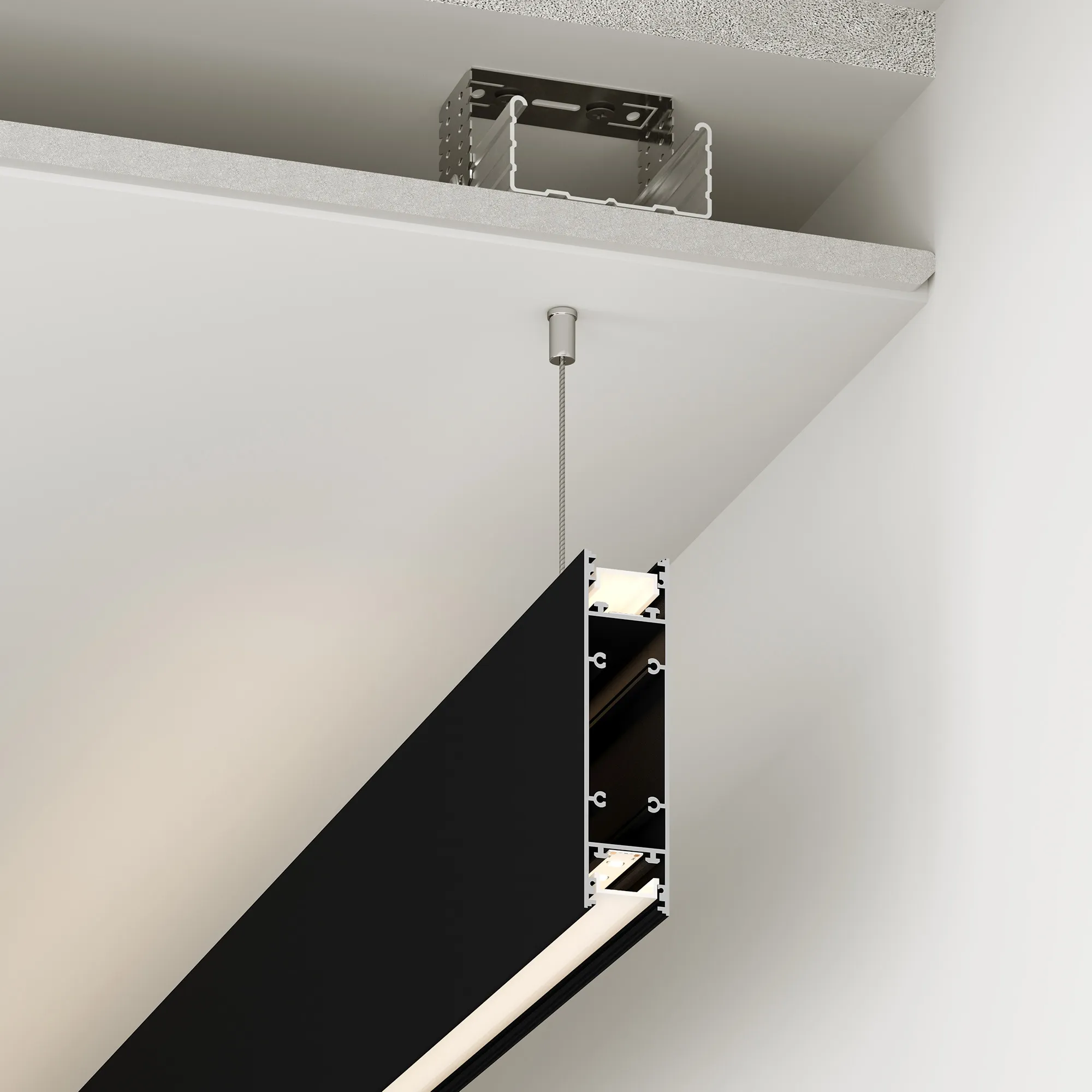 Под заказ от 20 м. Алюминиевый профиль для светодиодных лент и линеек, свечение вверх и вниз. Цвет - белый RAL9003 (порошковая окраска). Габаритные размеры (L×W×H): 2500x25x100 мм. Ширина площадки для ленты 12 мм. Экраны, заглушки и другие аксессуары приобретаются отдельно. Цена за 1 метр.