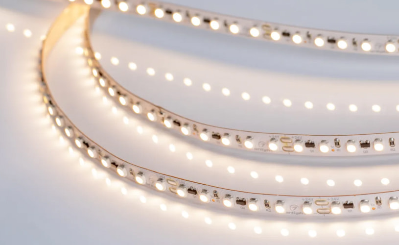 Как правило, чем выше мощность ленты (то есть ее энергопотребление, измеряется в Вт/м), тем ярче она светит. Но ничуть не меньше на яркость влияет такая характеристика, как световая эффективность (измеряется в лм/Вт). Чем выше световая эффективность, тем больше света лента дает на каждый ватт использованной энергии. То есть — тем лента экономичней и тем большее пространство она сможет хорошо осветить. Обратите внимание на линейку высокоэффективных лент Arlight.
